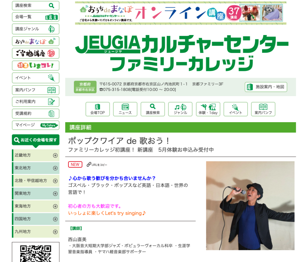 JEUGIAカルチャーセンターにて 2024-05-08 最終更新日時 : 2025-04-18 Sing Mirai Music JEUGIAカルチャーセンター ファミリーカレッジ にて講師をさせていただきます♪詳細はコチラ↓↓↓https://culture.jeugia.co.jp/lesson_detail_3-55194.html